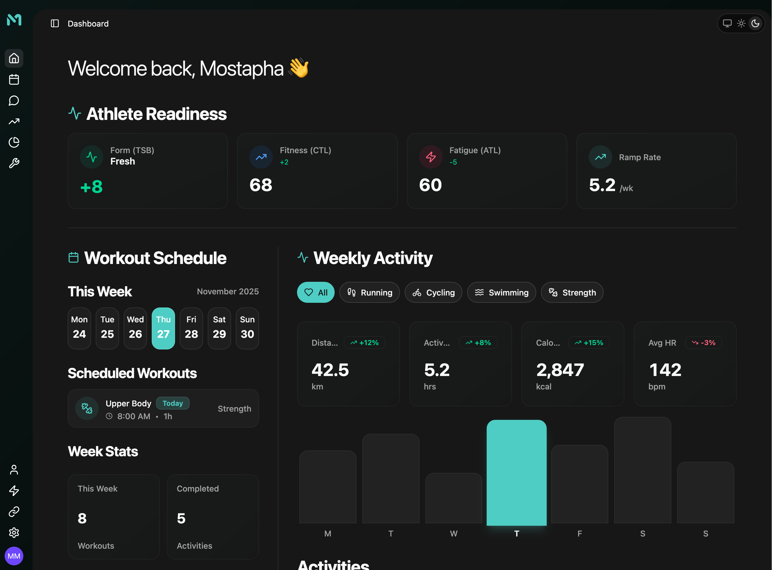 Unified data from Garmin, Polar, Strava, Wahoo, and more in one dashboard.